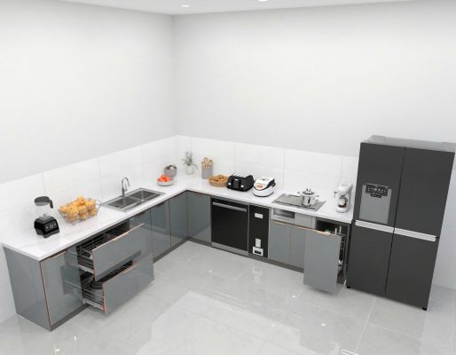 ==>>>tủ bếp tổ ông nhôm cánh kính đẹp sang trọng màu xám ghi và bao gồm các phụ kiện inox