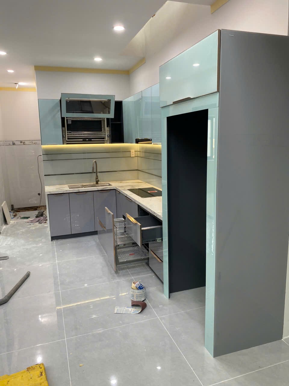 Tủ bếp inox cánh kính – kết hợp hoàn hảo giữa độ bền của inox và vẻ đẹp của kính.