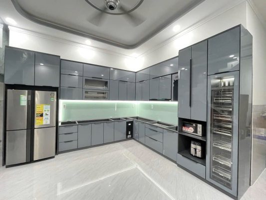 Tủ bếp inox cánh kính – kết hợp hoàn hảo giữa độ bền của inox và vẻ đẹp của kính.